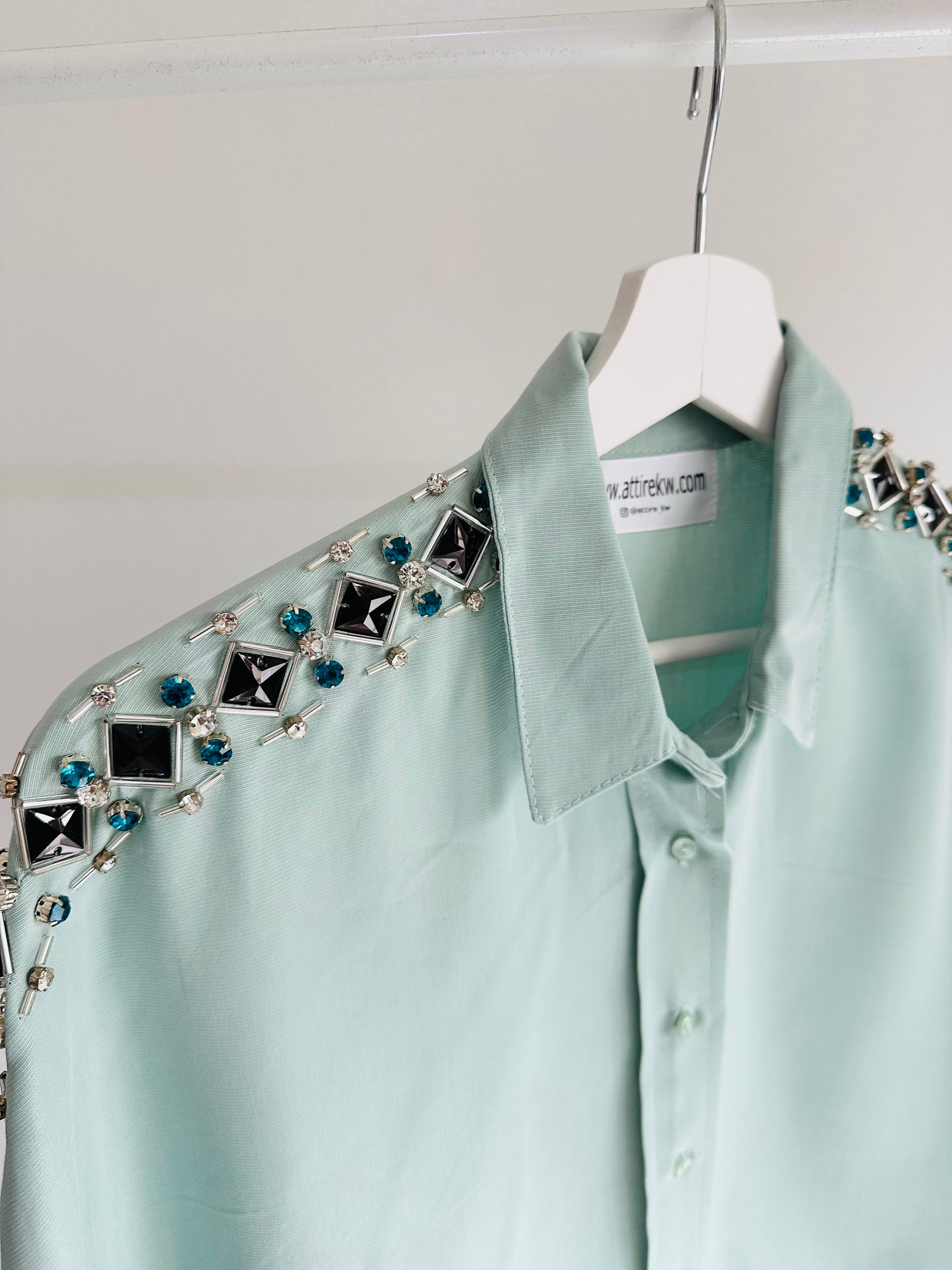 Green shirt black rhinestone